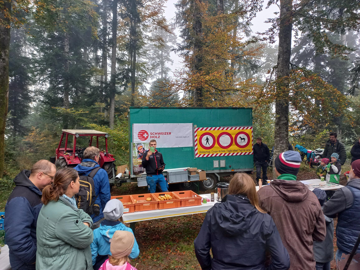 Eingeladen hat die Keusen Waldmanagement GmbH als Pächterin des Gemeindewaldes zusammen mit dem Elternverein von Wichtrach. Als wichtige Stütze der Keusen Waldmanagement GmbH ist auch Erwin Bernhard vor Ort, welcher mit seinem Engagement und seiner Mitarbeit zum guten Gelingen des Tages beigetragen hat.