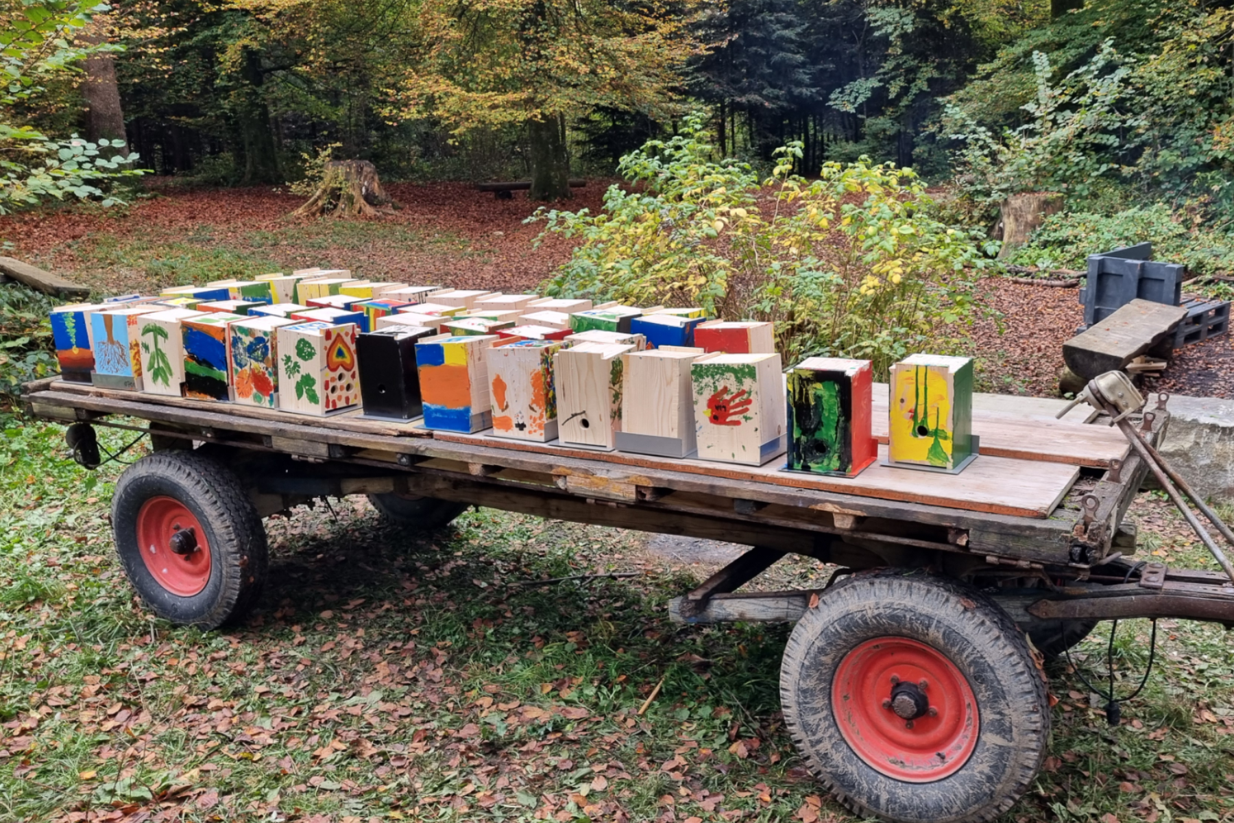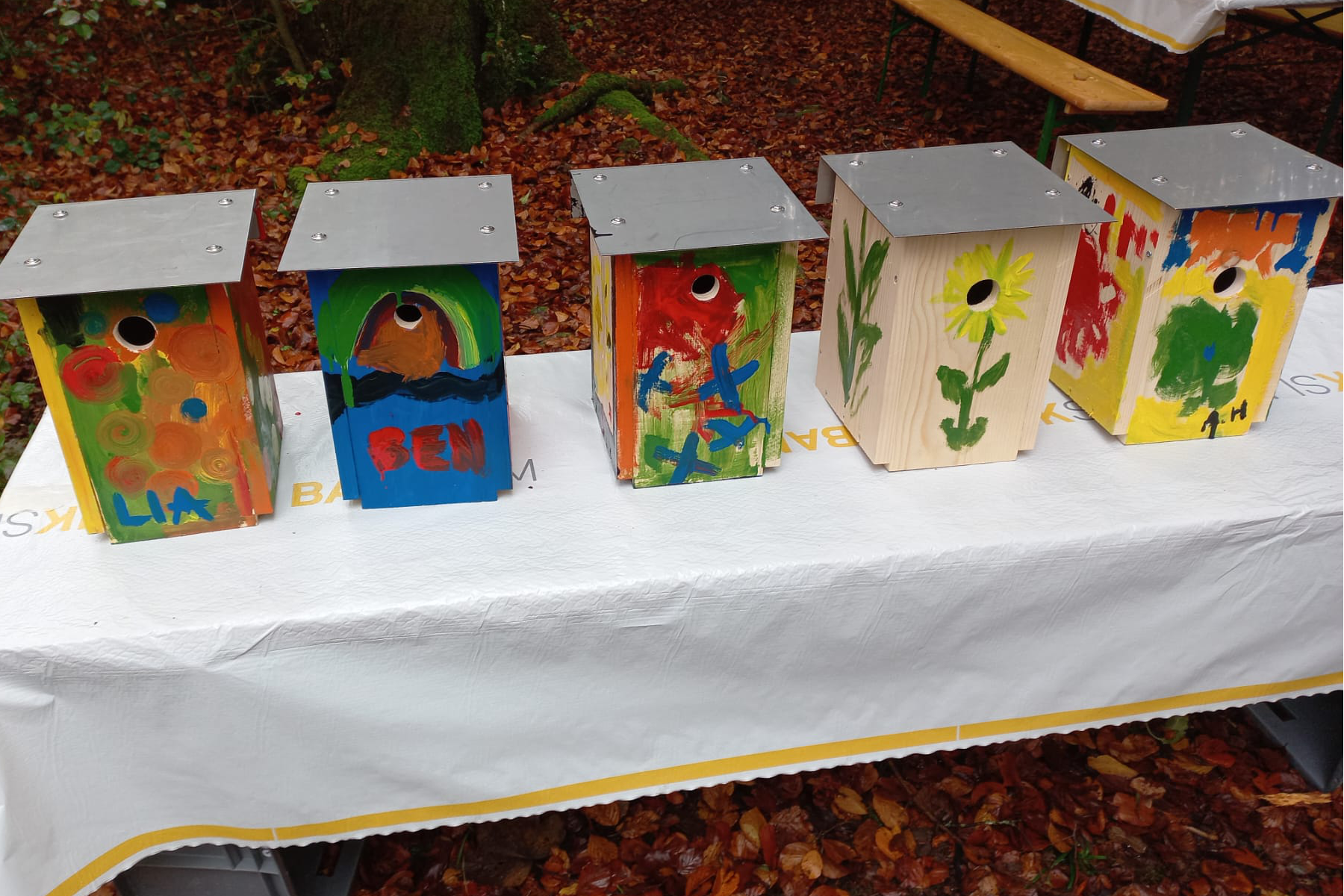 Alle durften die Nistkästen individuell bemalen, entstanden sind viele kleine Kunstwerke, welche für die nächste Brutsaison von der Keusen Waldmanagement GmbH im Bereich Eichelspitz und Gauchit aufgehängt werden.